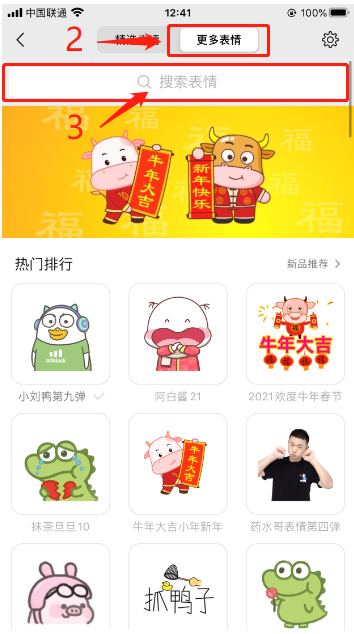 3、点击“搜索表情”