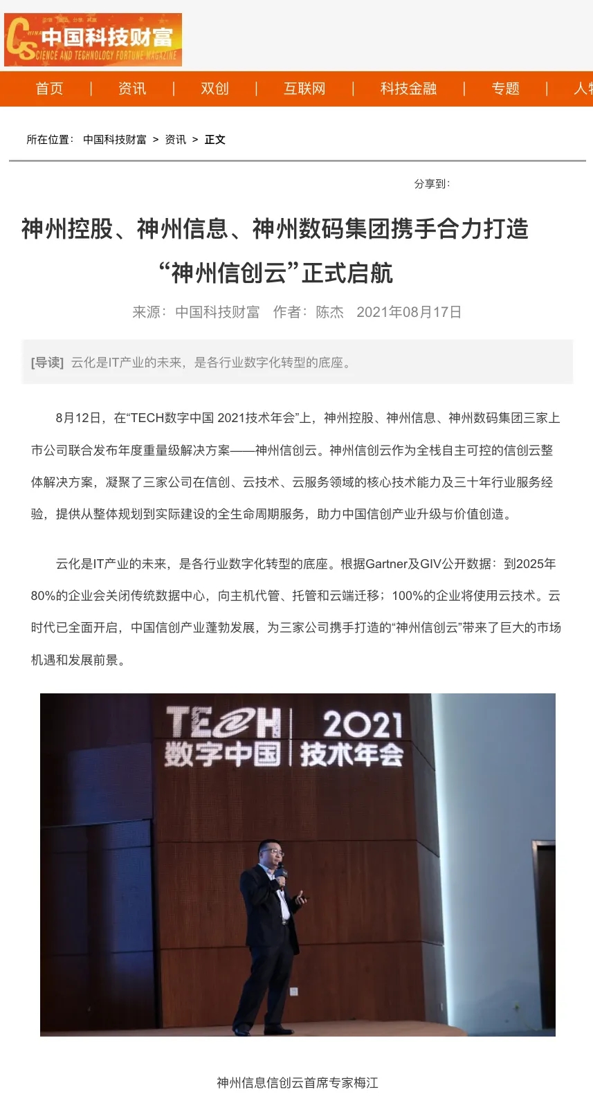 “数字中国 2021技术年会”云上举行 神州控股等联合发布 “神州信创云”