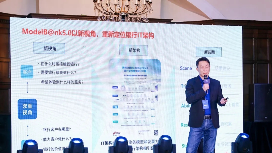 演讲最后,戴可分享了金融机构数字化评估体系。他指出,当前银行存在缺乏统一建设标准和架构的痛点,BB贝博艾弗森官网以基于ModelB@nk5.0架构的200余个评估体系指标,实现了核心技术、场景应用、经营管理等多个维度的覆盖,助力银行数字化转型,成为金融行业最值得信赖的合作伙伴。