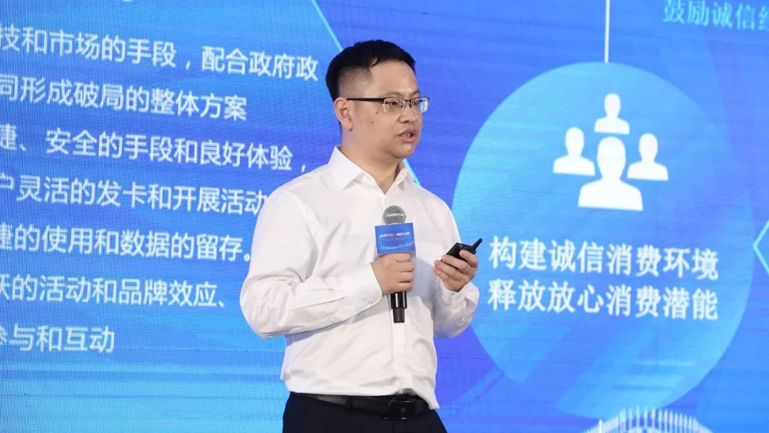 神州方圆总经理陈宏鸿作为代表分享了该平台的技术亮点与价值突破。平台以前沿区块链技术应用为支撑,利用数字人民币智能合约技术优势,将消费者、商户、金融机构及监管各方均纳入云上运行体系中,交易全程上链,建立各方数据共享机制。为消费者打造以“我”为中心的APP,提供线上线下一体化的安全便捷的极致消费体验;赋能商户数字化服务,高效低成本触达广泛的C端用户,畅通融资渠道,提高获客留客能力,助力商户生态搭建;也拓宽了金融机构的金融产品类型、保障金融市场安全有序;政府实现全方位监管,加强源头治理,建立诚信体系和数字资产流通市场,从而共同营造良性、健康、有活力的预付消费市场。