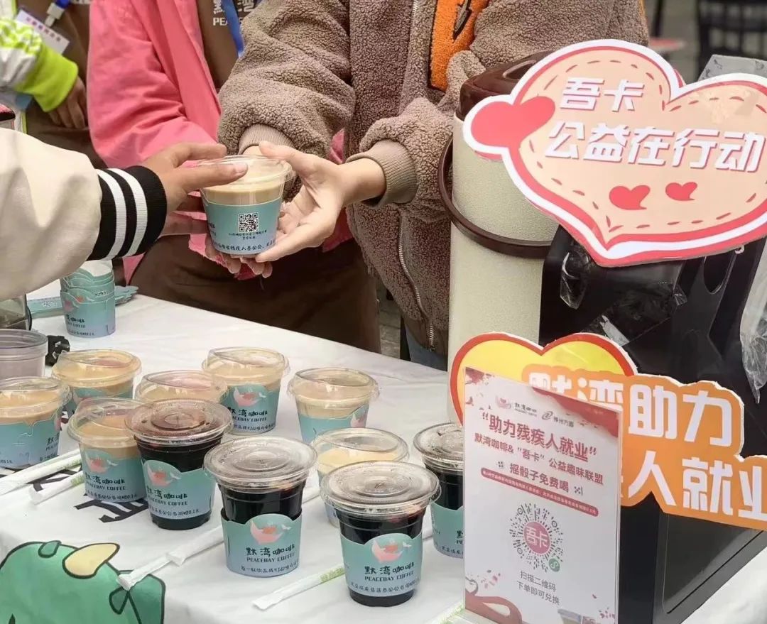 就业帮扶,同心圆梦。默湾咖啡为特殊人群提供就业工作机会的爱心商家,店内的工作人员都是聋哑人,为特殊人群增加工作机会的爱心商家。